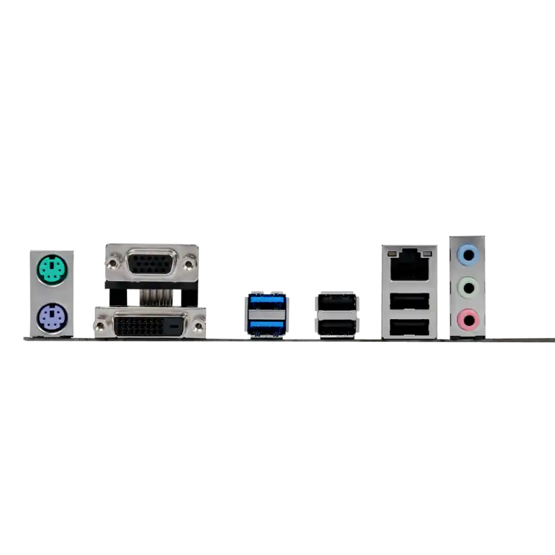 2 x USB 3.1 Gen 1 (Mavi) Tip A,,4 x USB 2.0,1 x DVI-D,1 x PS/2 klavye (mor),3 x Ses Jak(lar),1 x LAN (RJ45) port(lar),1 x D-Sub,1 x PS/2 fare (yeşil)